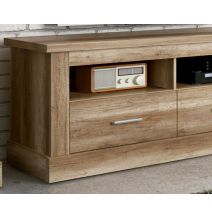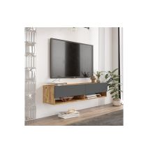 Mueble TV Completo en Melamina Color Roble y Negro, 180x35x48.5 cm, con 2 Estantes